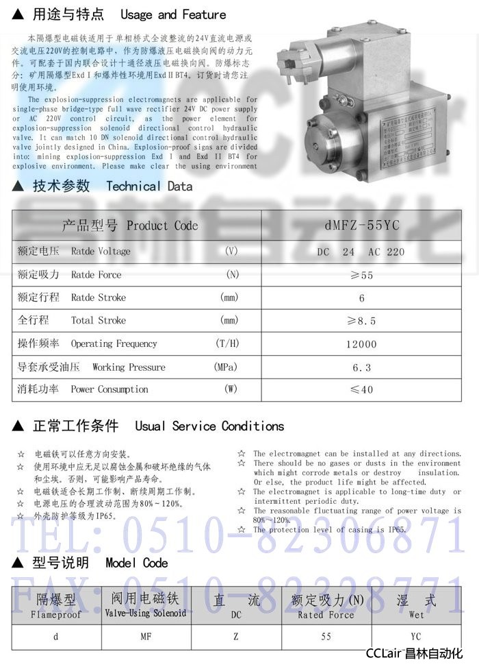 dMFZ-55YC,隔爆型直流濕式閥用電磁鐵