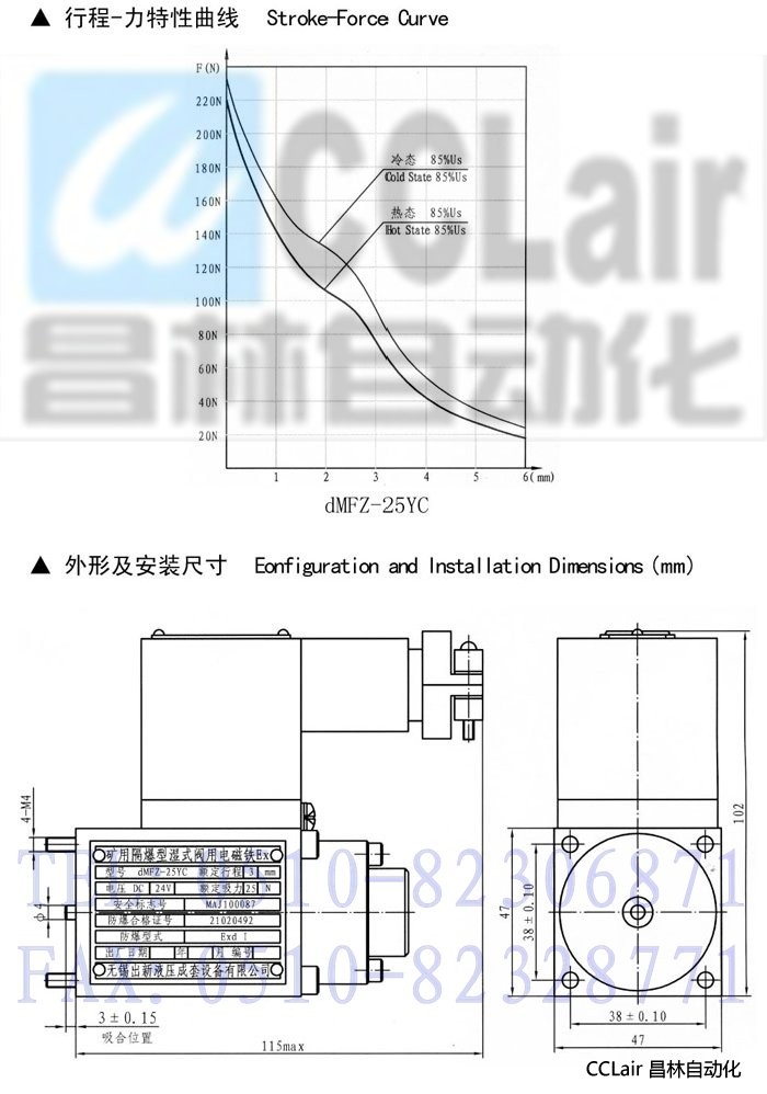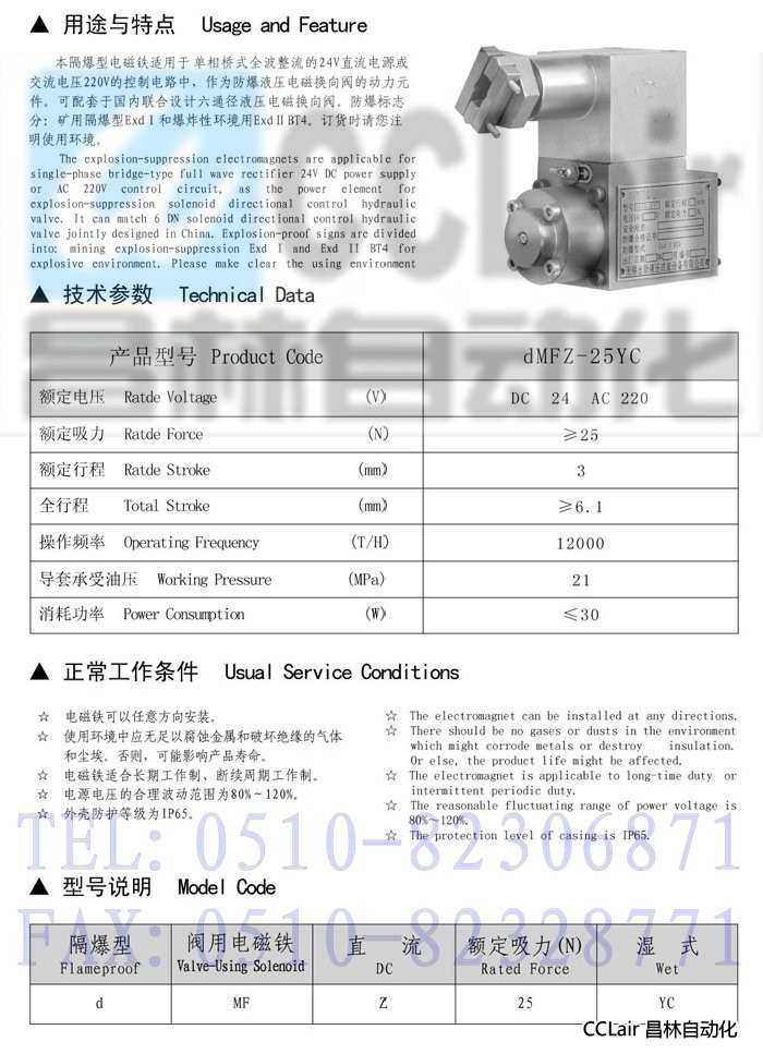 dMFZ-25YC,隔爆型直流濕式閥用電磁鐵