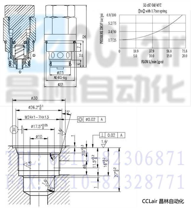 此閥使用時(shí),允許液流以很低的壓力降從①口 到② 口,同時(shí)阻止液流從② 口到① 口.