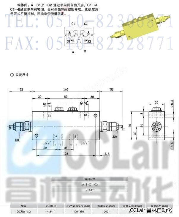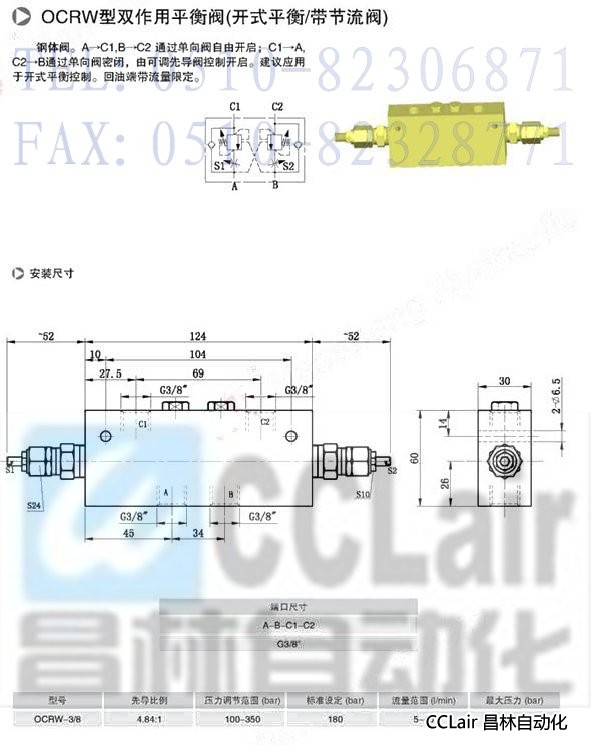 OCRW-3/8,OCRW-1/2,雙作用平衡閥(開(kāi)式平衡/帶節(jié)流閥)