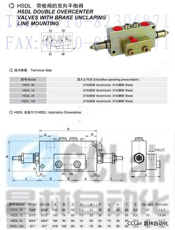 HSDL 38,HSDL 12,HSDL 34,HSDL 100,帶梭閥的雙向平衡閥