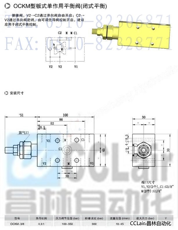 OCKM-3/8,板式單作用平衡閥(閉式平衡)