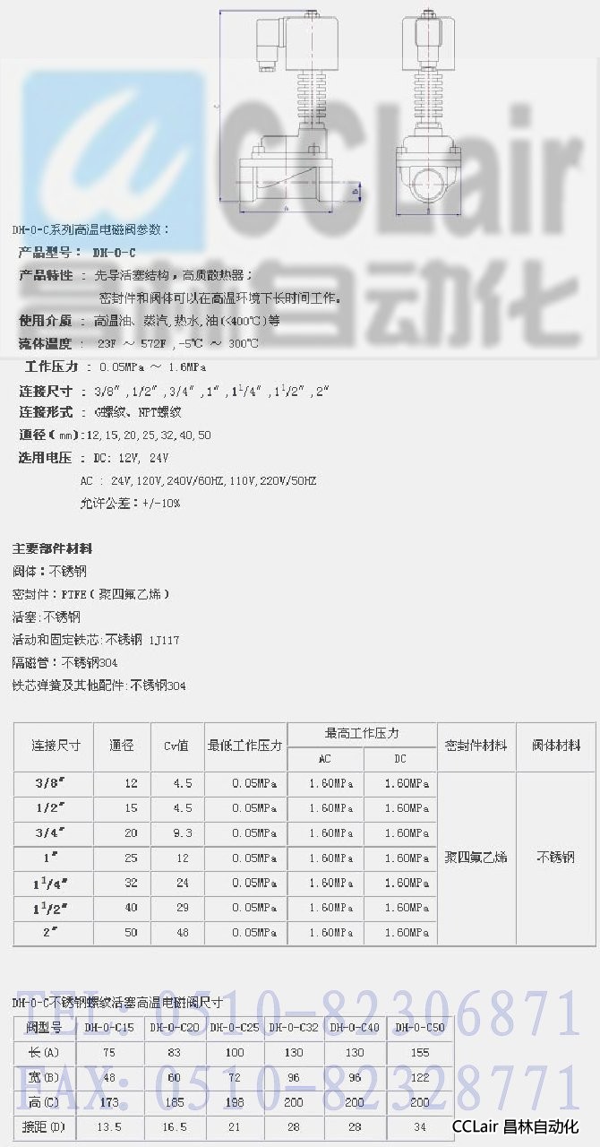 DH-O-C15,DH-O-C20,DH-O-C25,DH-O-C32,DH-O-C40,DH-O-C50,超高溫電磁閥