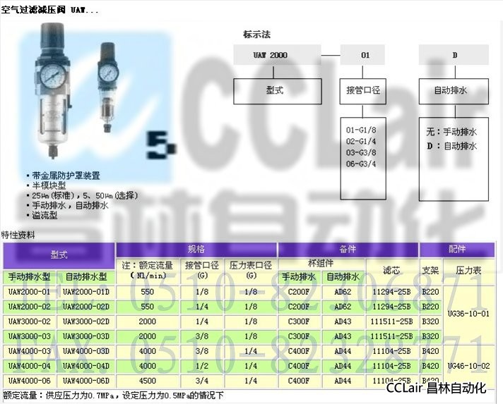 UAW2000-01,UAW2000-01D,UAW2000-02,UAW2000-02D,空氣過濾減壓閥