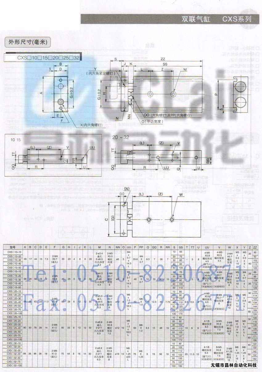 CXSL20-80-Z73,CXSL20-80-Z76,CXSL20-80-Y59A,雙聯(lián)氣缸