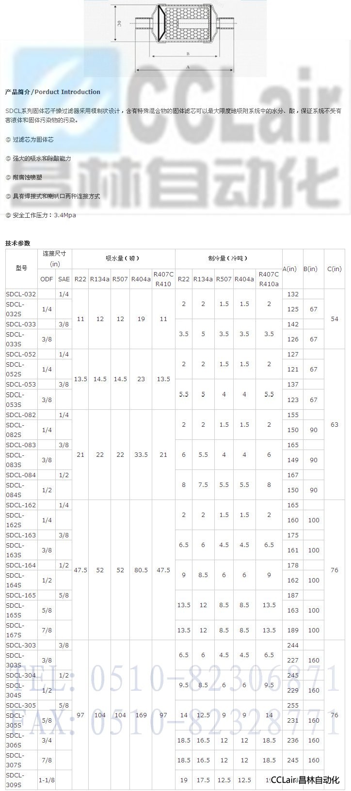SDCL-053,SDCL-053S,SDCL-082,SDCL-082S,固體芯干燥過濾器