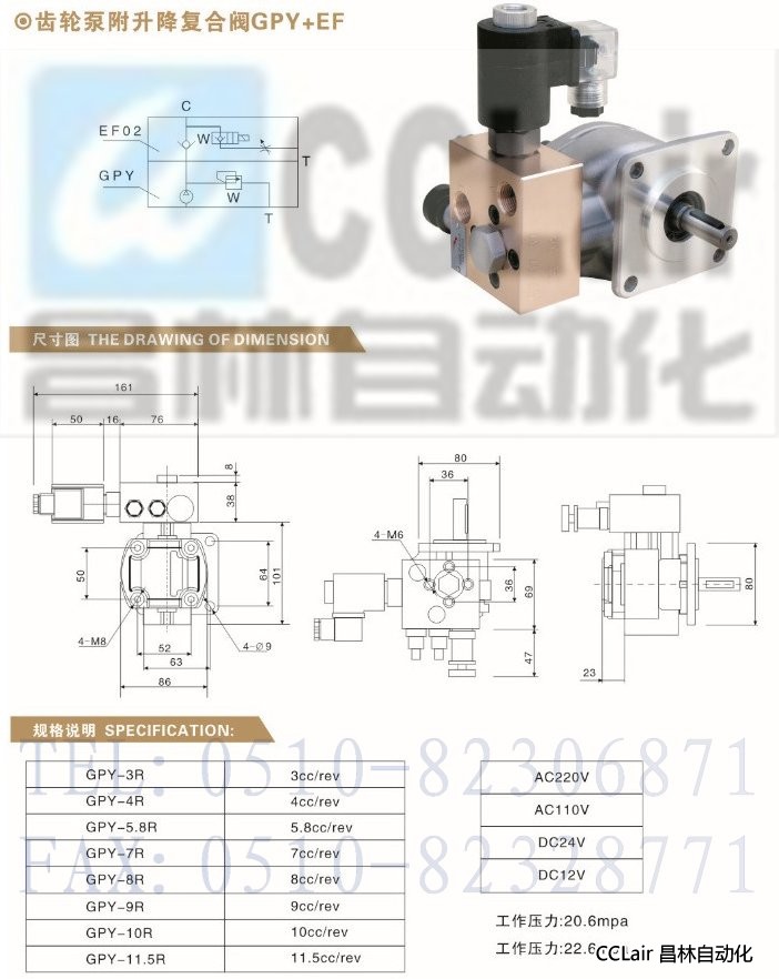 GPY-3R,GPY-4R,GPY-5.8R,GPY-7R,GPY-8R,GPY-9R,齒輪泵附升降復(fù)合閥