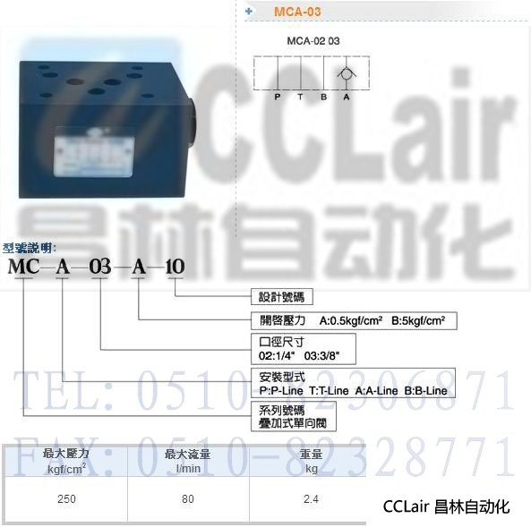 MCA-03-A-10,MCA-03-B-10,疊加式單向閥
