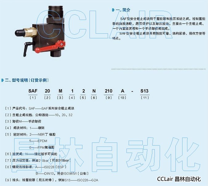 SAF10M12N210A-S13,SAF10M12N210B-S13,蓄通器安全截止閥塊