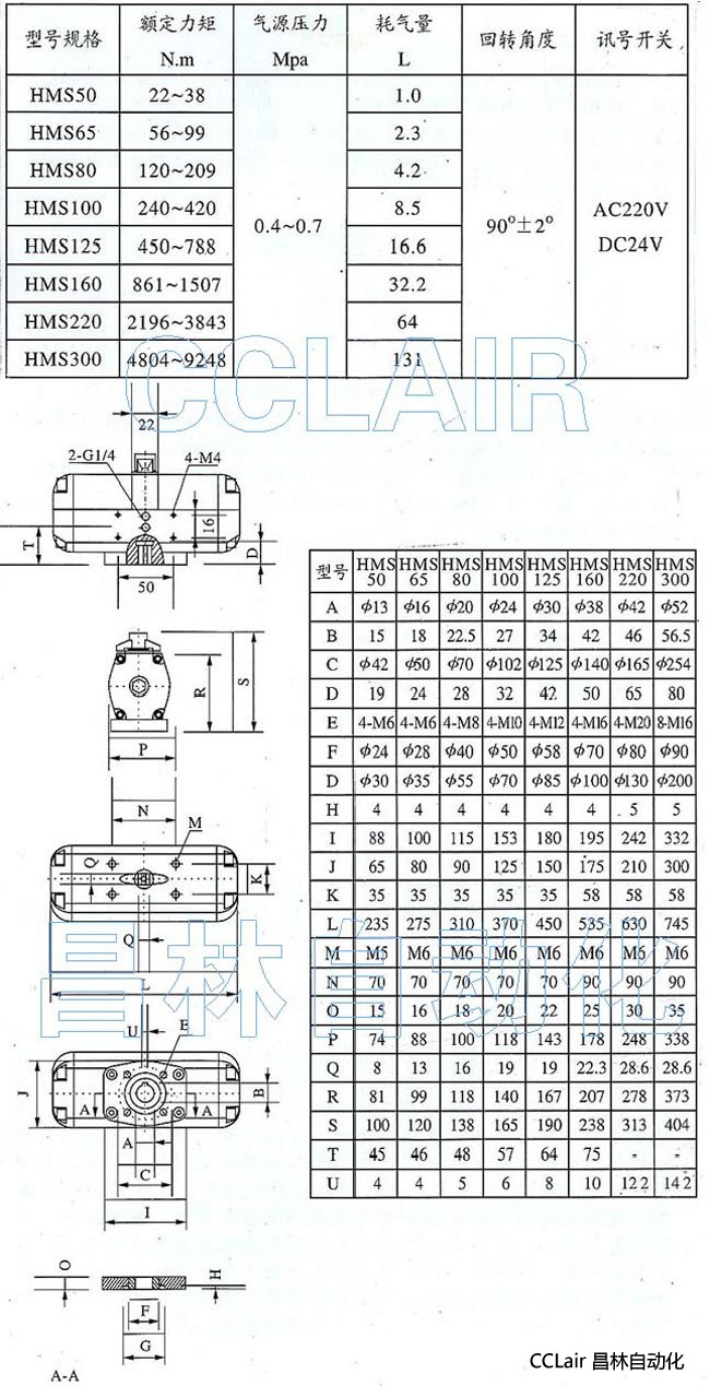 HMS50,HMS65,HMS80,HMS100,HMS125,氣動裝置