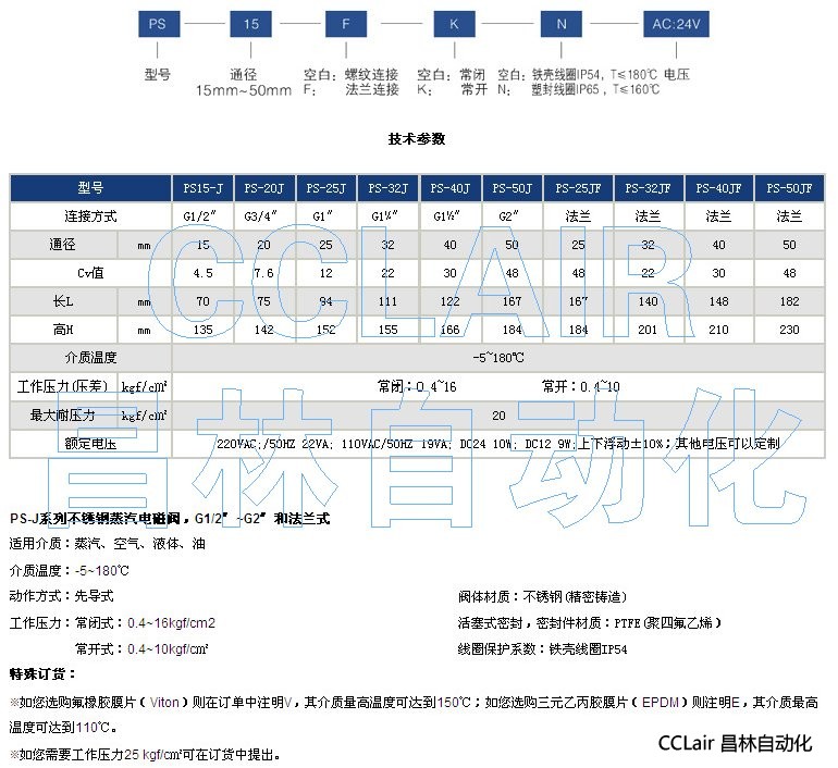 PS-15J,PS-20J,PS-25J,PS-32J,PS-40J,PS-50J,不銹鋼蒸汽電磁閥,G1/2〞~G2〞和法蘭式