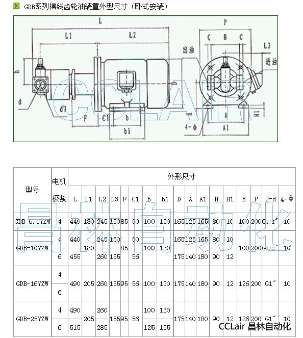 GDB-6.3Y,GDB-10Y,GDB-16Y,GDB-25Y,高粘度低噪音擺線齒輪油泵及裝置