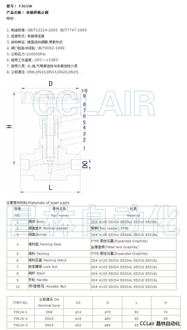 FJ61W-1,FJ61W-2,FJ61W-3,承插焊截止閥