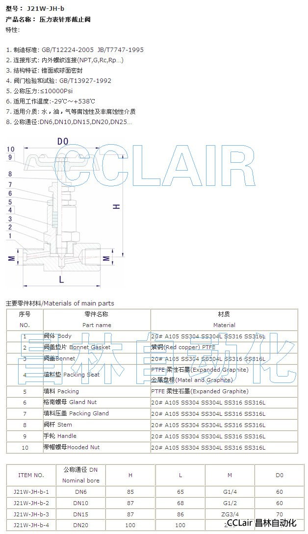 J21W-JH-b-1,J21W-JH-b-2,J21W-JH-b-3,J21W-JH-b-4, 壓力表針形截止閥