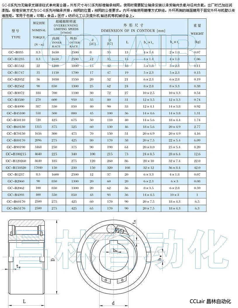 GC-B90190,GC-B100215,GC-B120260,單向離合器