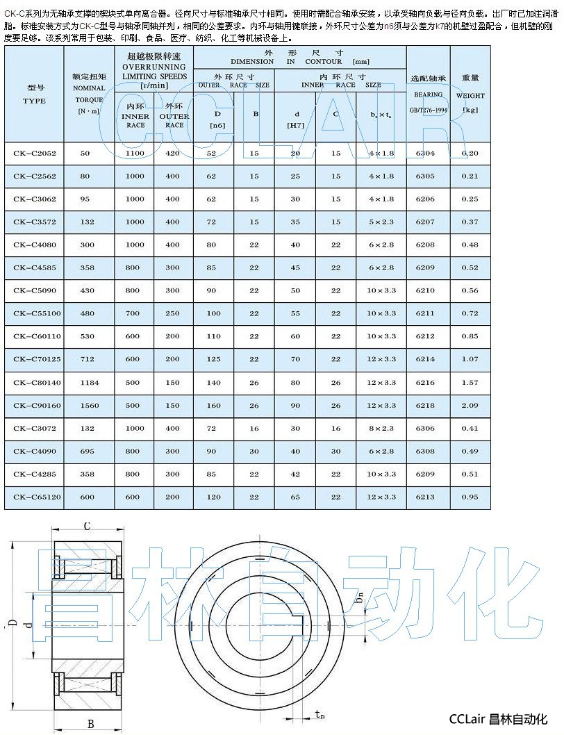 CK-C2052,CK-C2562,CK-C3062,CK-C3572,單向離合器