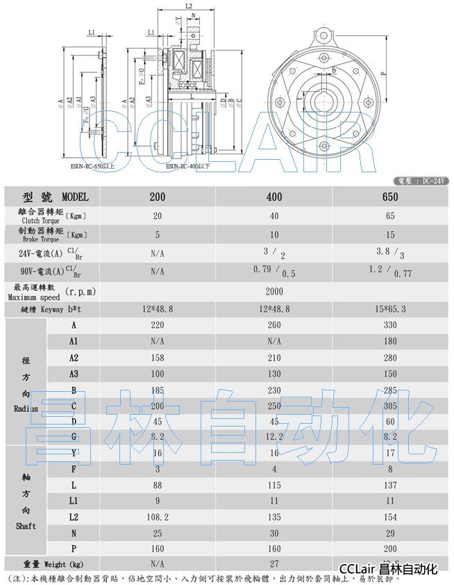ESUN-RC-200,ESUN-RC-400,ESUN-RC-650,套筒型電磁離合、安全制動器組