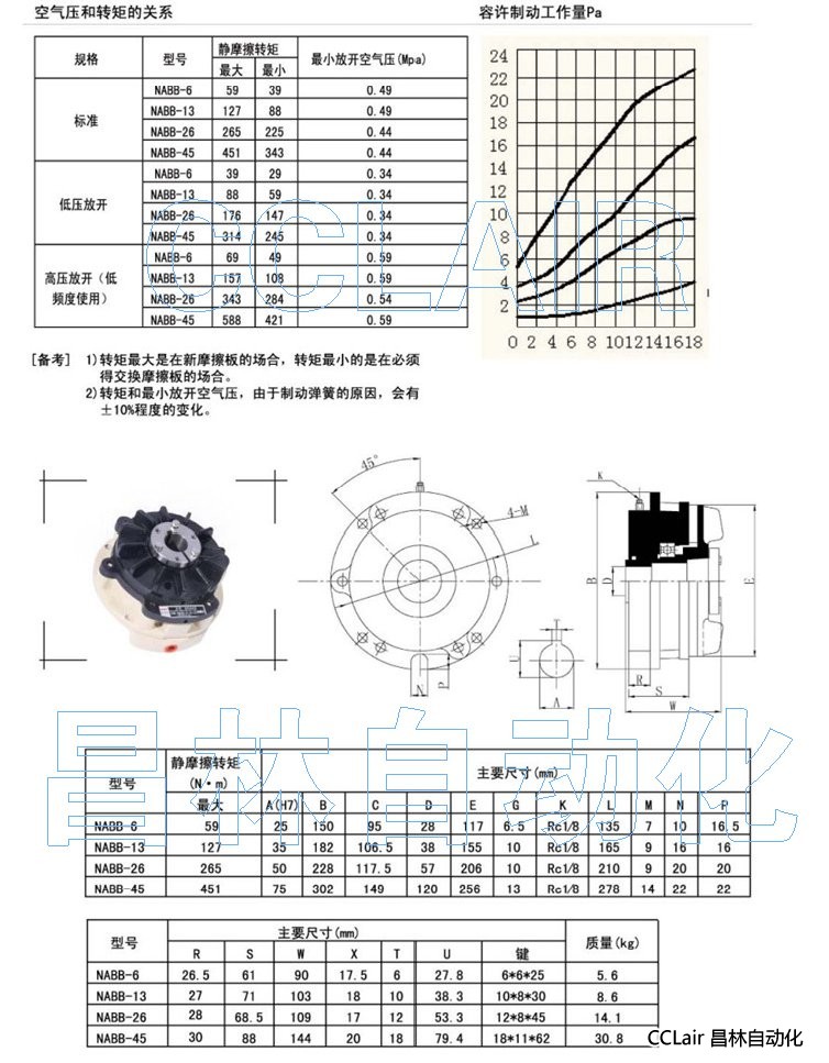 NABB-8,NABB-13,NABB-26,NABB-45,空壓(彈簧制動)通軸式制動器