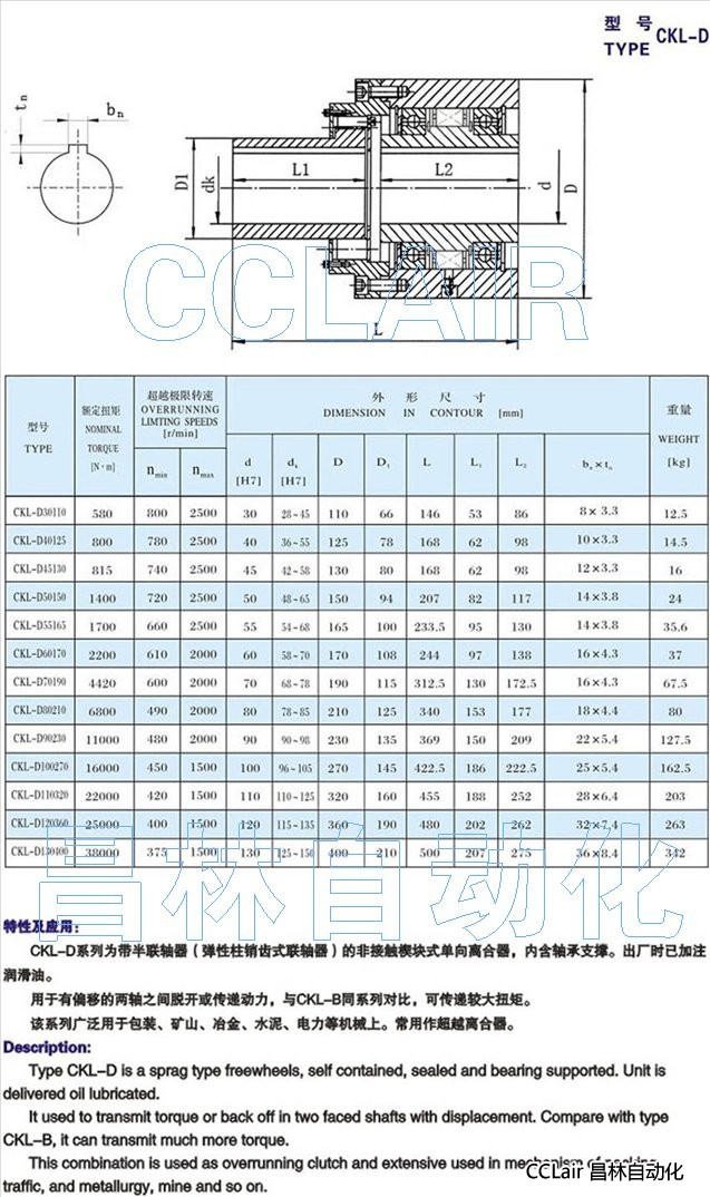 CKL-D30110,CKL-D40125,CKL-D45130,CKL-D50150,CKL-D55165,CKL-D60170,單向離合器