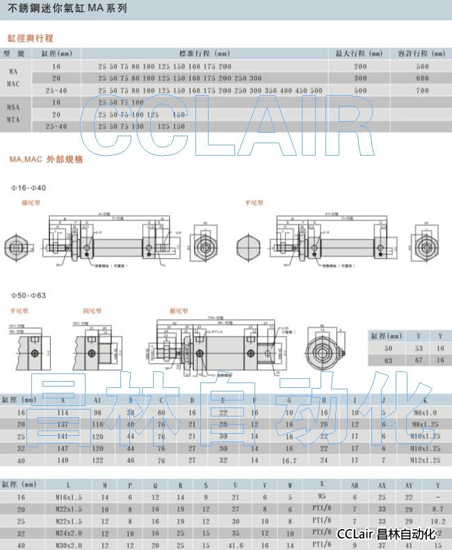 MA-CM16X50,MA-40X100,MAC-25X50,MSA-CM20X100,MA-U20X50,MTA-40X50,不銹鋼迷你氣缸