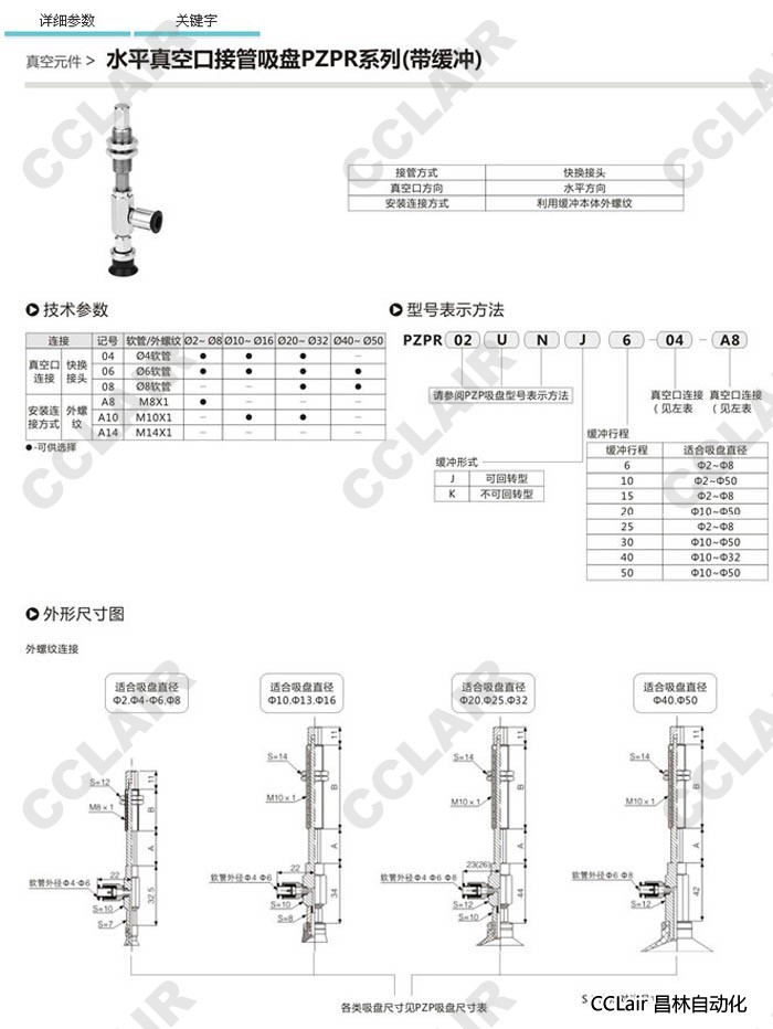 PZPR20CJ6,PZPR25CJ6,PZPR32CJ6,PZPR40CJ6,PZPR50CJ6,PZPR20CK6,水平真空口接管吸盤