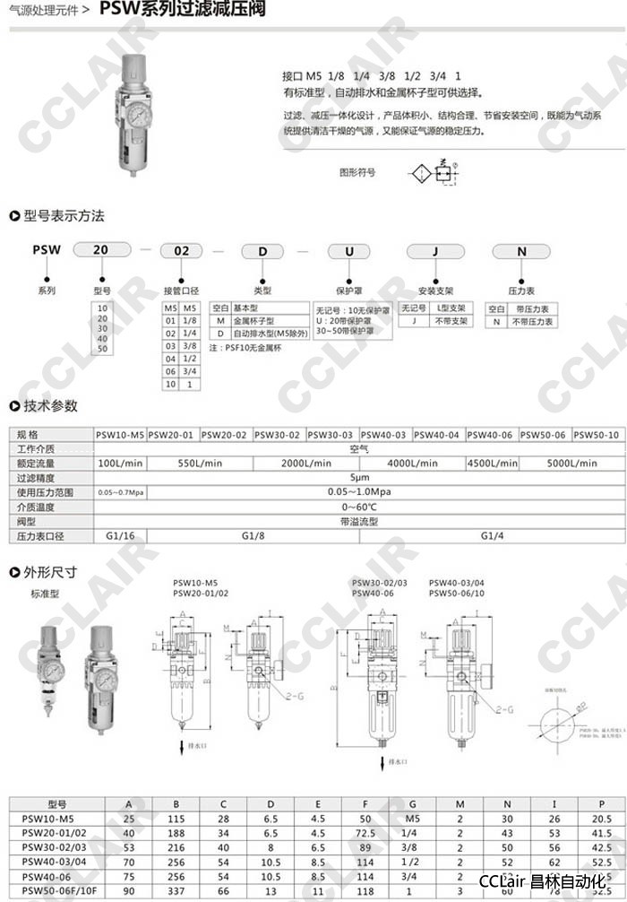 PSW30-MS,PSW30-01,PSW30-02,PSW30-03,PSW30-04,PSW30-06,PSW30-10,氣動過濾減壓閥