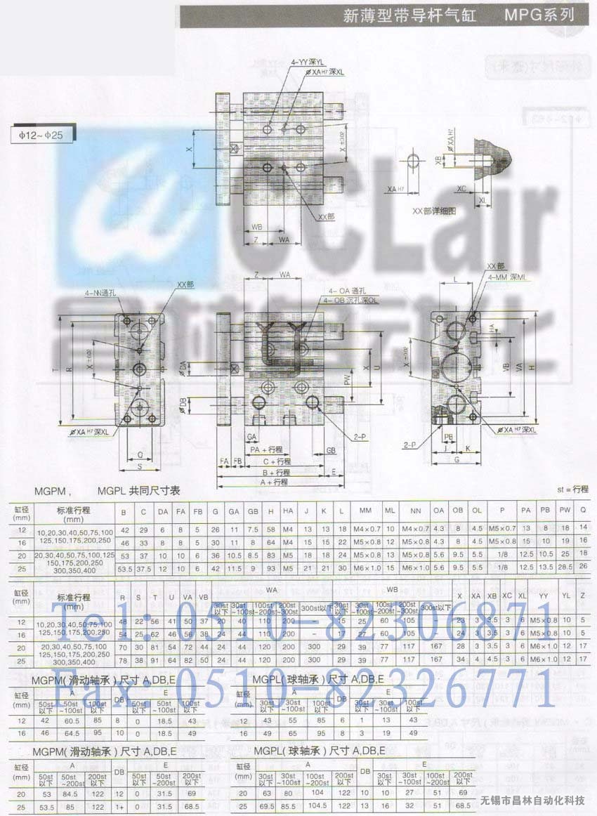 MGPL20N-20,MGPL20N-30,MGPL20N-40,MGPL20N-50,新薄型帶導(dǎo)桿氣缸