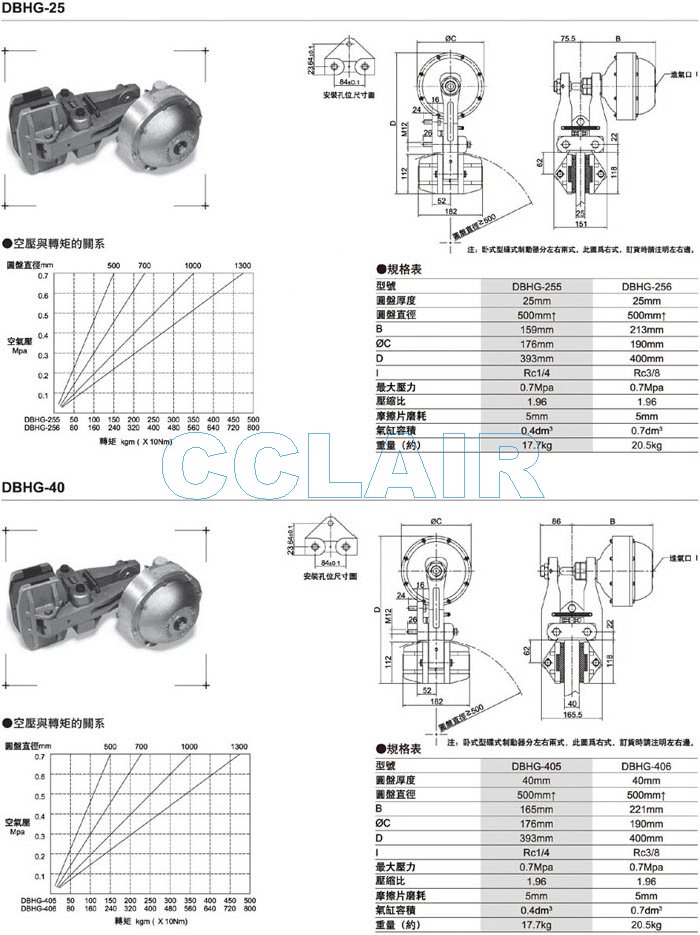 DBHG-255,DBHG-256,DBHG-405,DBHG-406,空壓碟式制動(dòng)器