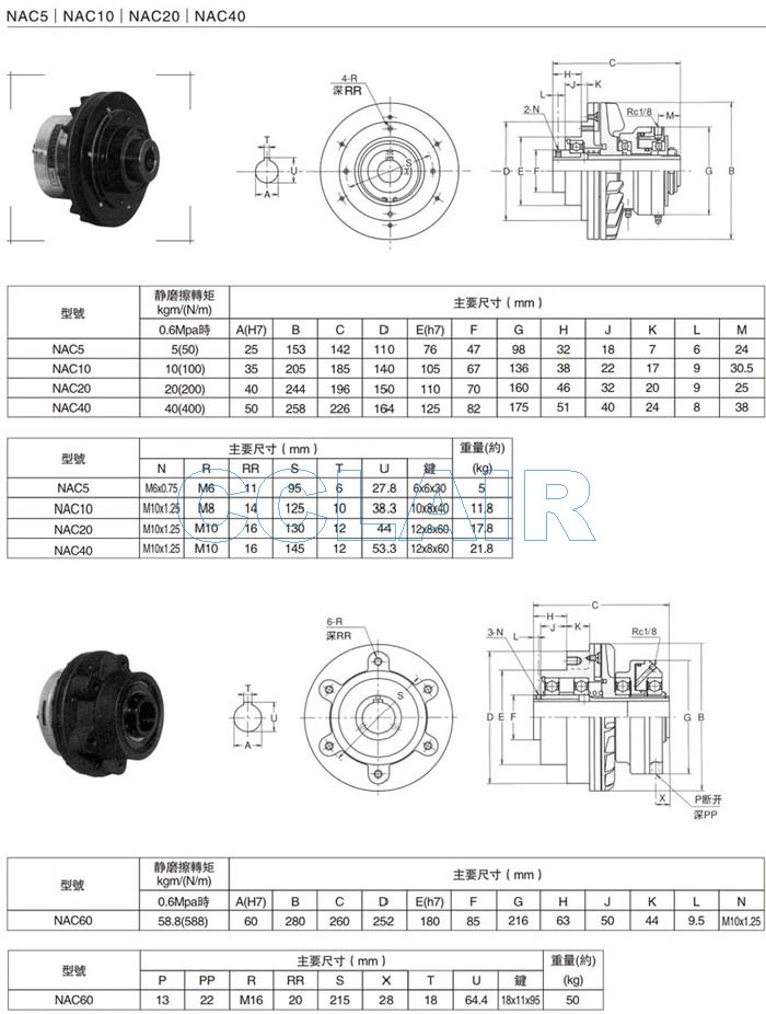 NAC0.2,NAC1.4,NAC2,NAC5,NAC10,NAC20,NAC40,NAC60,空壓通軸式制動(dòng)器
