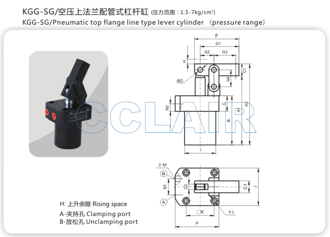 KGG-SG25,KGG-SG32,KGG-SG40,KGG-SG50,KGG-SG63,空壓上法蘭配管式杠桿缸