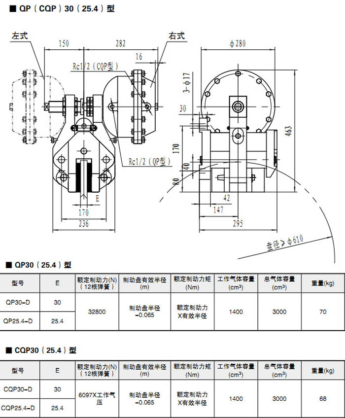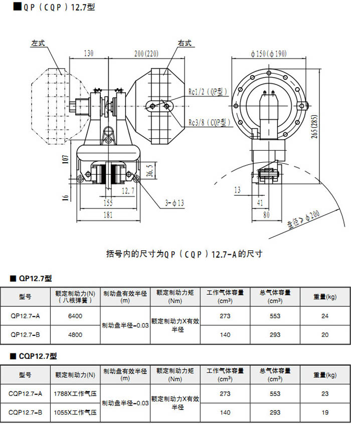 CQP12.7-A,CQP12.7-B,QPL12.7A-A,QPL12.7A-B,CQPL12.7A-A,氣動鉗盤式制動器