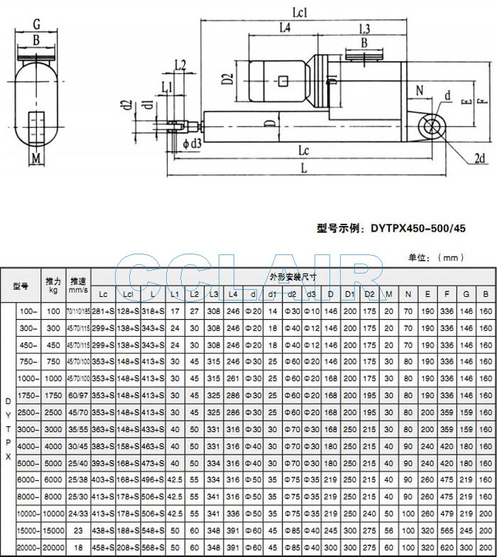DYTPX100,DYTPX300,DYTPX450,DYTPX750,DYTPX1000,DYTPX1750,DYTPX2500,DYTPX3000,電液推桿