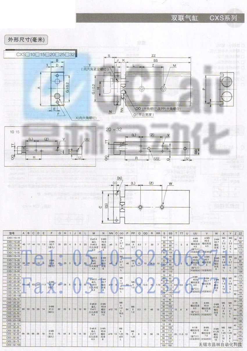 CXSL20-25-Z73,CXSL20-25-Z76,CXSL20-25-Y59A,雙聯(lián)氣缸,