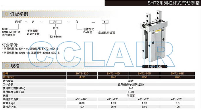 SHT2-32D-S,SHT2-40D-S,SHT2-50D-S,SHT2-63D-S,杠桿式氣動手指氣缸