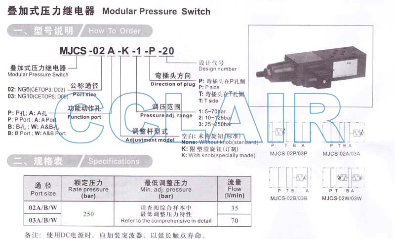 MJCS-02A,MJCS-02B,MJCS-02P,MJCS-02W,MJCS-03A,MJCS-03B,MJCS-03P,MJCS-03W,疊加式壓力繼電器