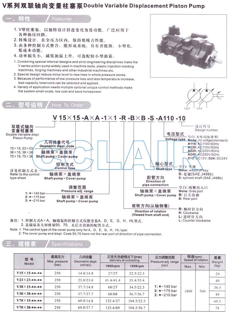 V15*15,V23*23,V38*38,V70*15,V70*38,V15*15-A*A-1*1-R-B*B-S-A110-10,雙聯(lián)軸向變量柱塞泵