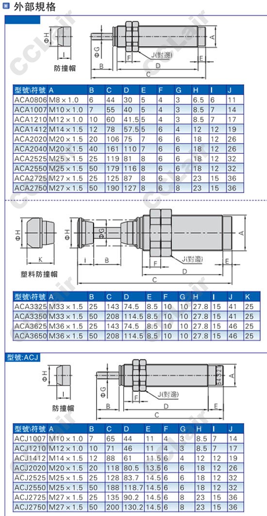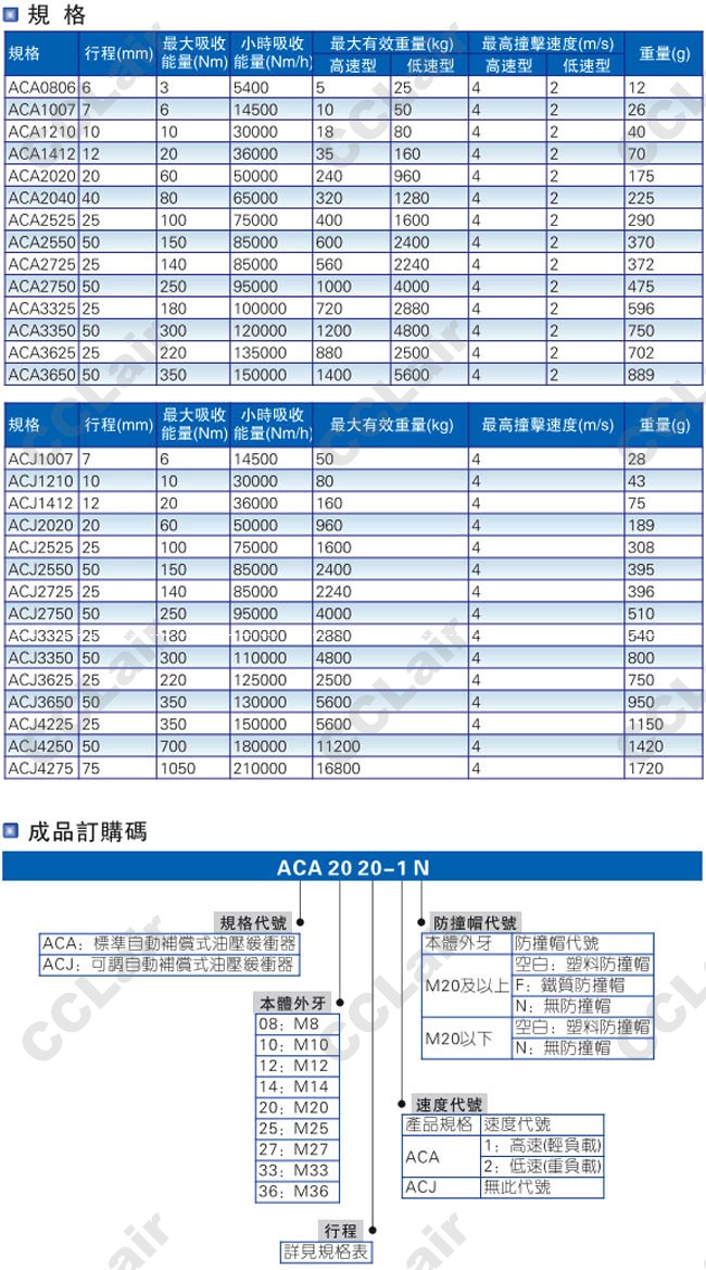 ACA2725-1N,ACA2750-1N,ACA3325-1N,ACA3350-1N,ACA3625-1N,ACA3650-1N,油壓緩沖器