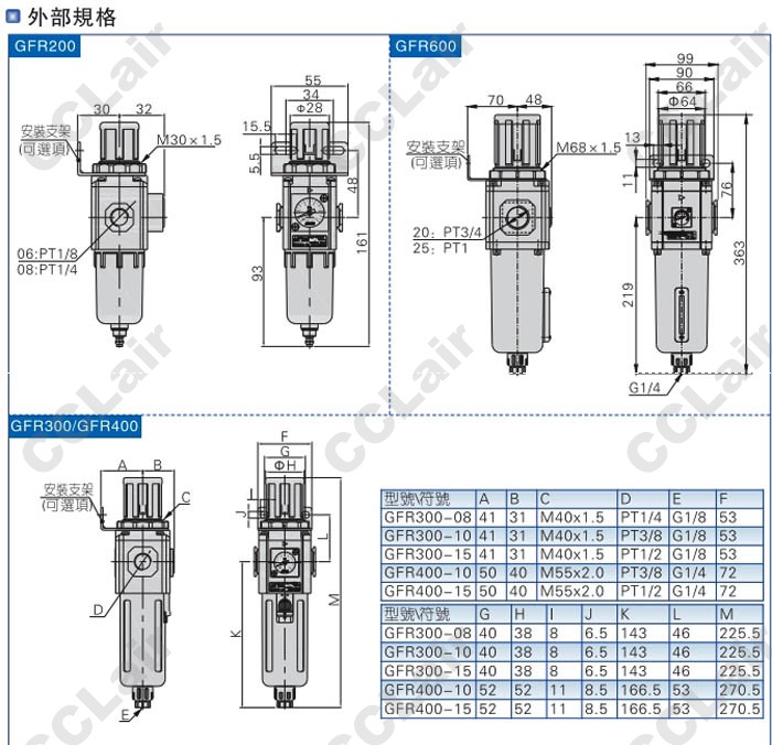GFR300-08-M-L-J-NF1-W,臺灣亞德客(AirTAC),GFR300-10-M-L-J-NF1-W,GFR300-15-M-L-J-NF1-W,