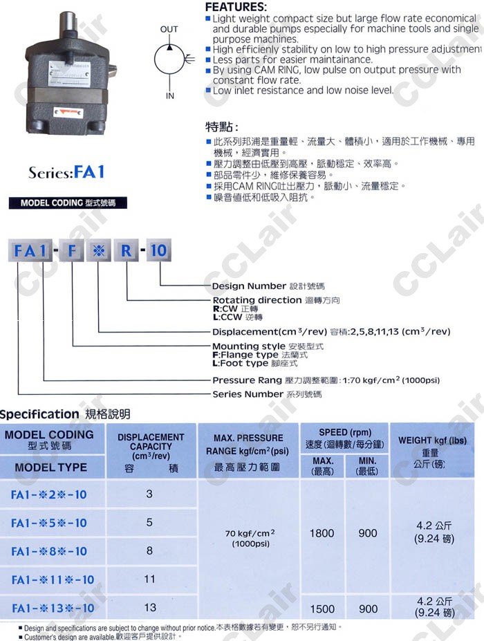 FA1-F2R-10,FA1-L5R-10,FA1-F8R-10,FA1-F11R-10,FA1-F13R-10,FA1-F2L-10,FA1-L5L-10,葉片泵