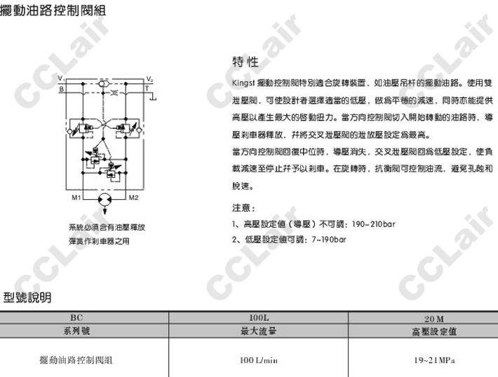 BC-100L-20M,擺動油路控制閥組