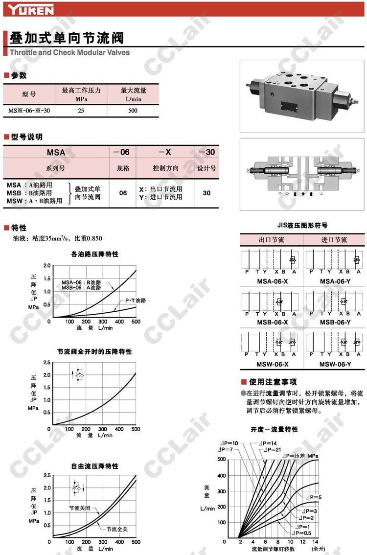 MSA-06-X-30,MSA-06-Y-30,MSB-06-X-30,MSB-06-Y-30,MSW-06-X-30,MSW-06-Y-30,疊加式單向節(jié)流閥,YUCIYUKEN榆次油研 |