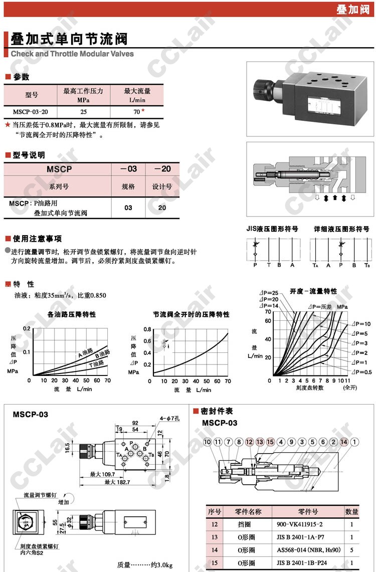 MSCP-03-20,疊加式單向節(jié)流閥,YUCIYUKEN榆次油研