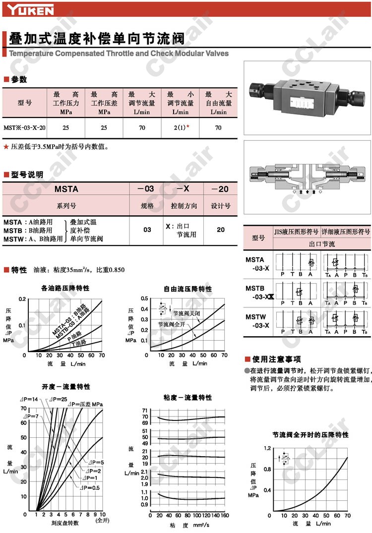 MSTA-03-X-20,MSTB-03-X-20,MSTW-03-X-20,疊加式溫度補(bǔ)償單向節(jié)流閥,YUCIYUKEN榆次油研