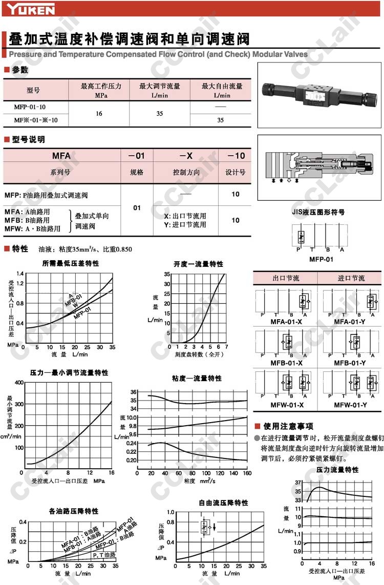 MFA-01-X-10,MFA-01-Y-10,MFB-01-X-10,MFB-01-Y-10,MFW-01-X-10,MFW-01-Y-10,疊加式單向調(diào)速閥,YUCIYUKEN榆次油研