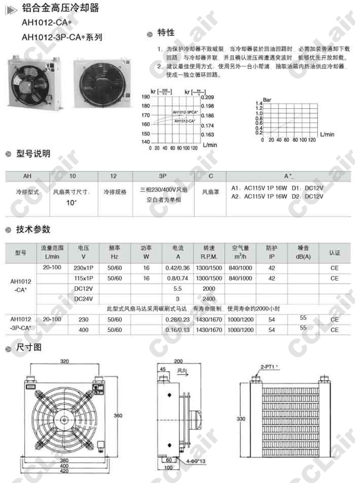 AH1012-CA1,AH1012-CA2,AH1012-CD1,AH1012-CD2,AH1012-3P-CA1,高壓冷卻器