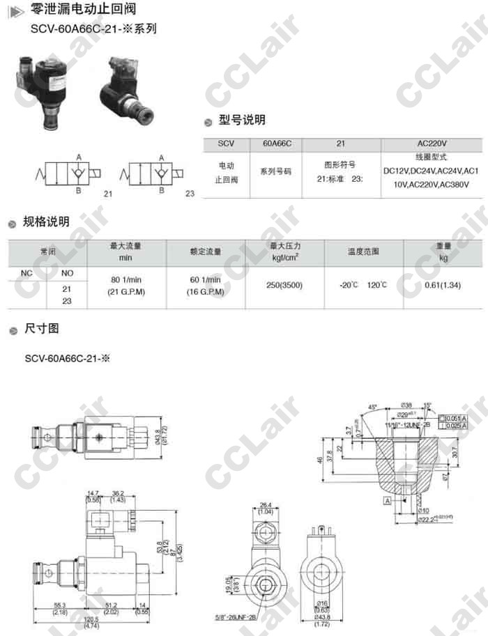 SCV-60A66C-21,SCV-60A66C-23,SCV-60A66C-21-DC12V,SCV-60A66C-21-DC24V,零泄漏電動(dòng)止回閥