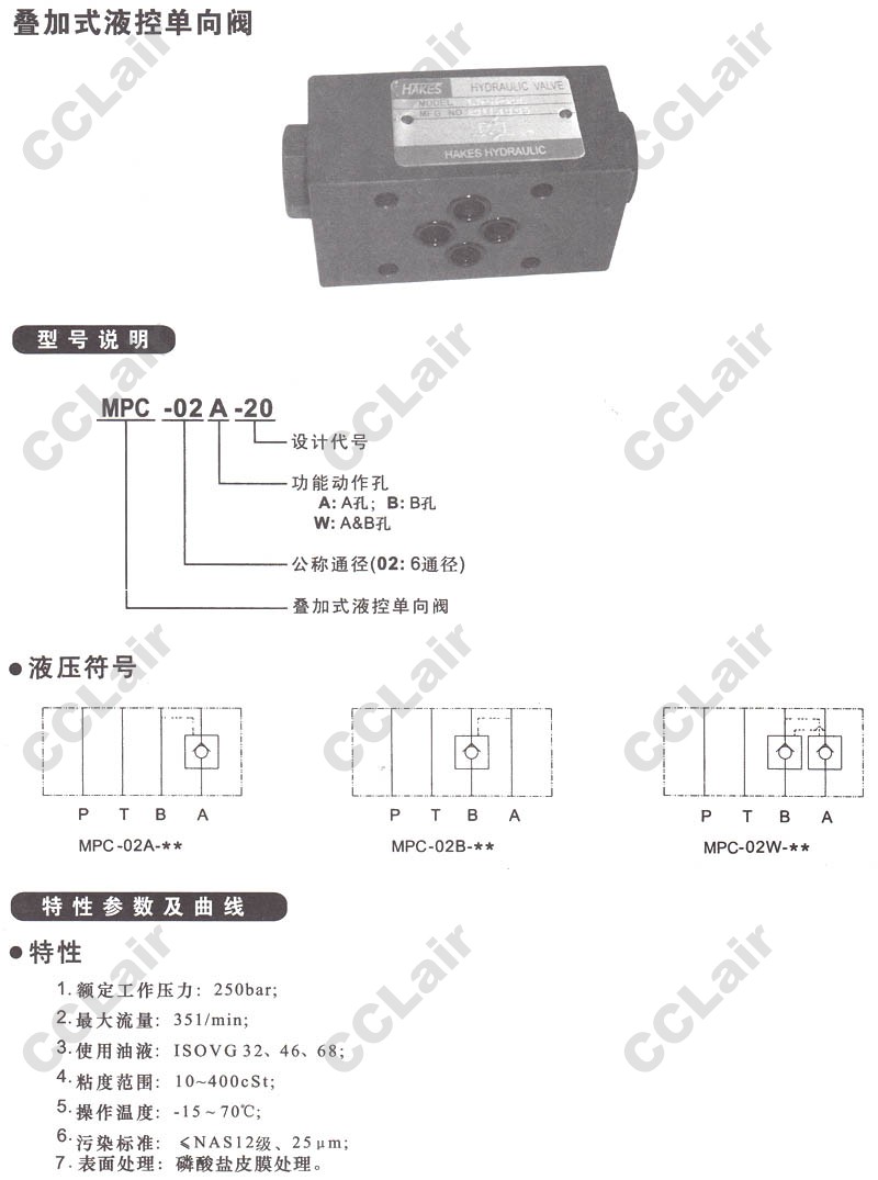 MPC-02A-20,MPC-02B-20,MPC-02W-20,疊加式液控單向閥
