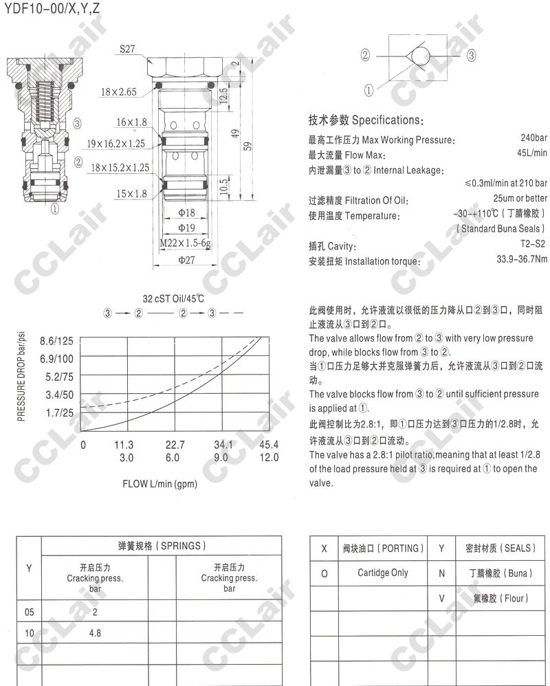 YDF10-00(老型號YDF06-00-00) 液控單向閥