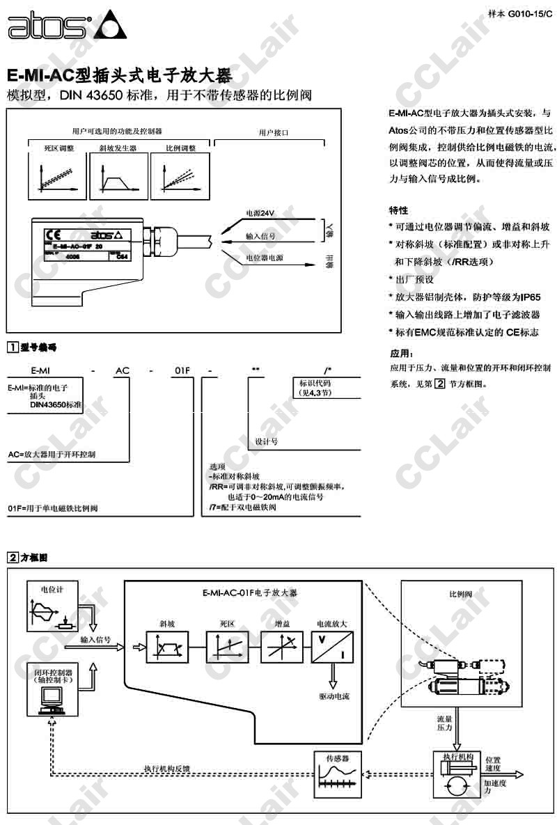 E-MI-AC-01F,阿托斯ATOS插頭式電子放大器