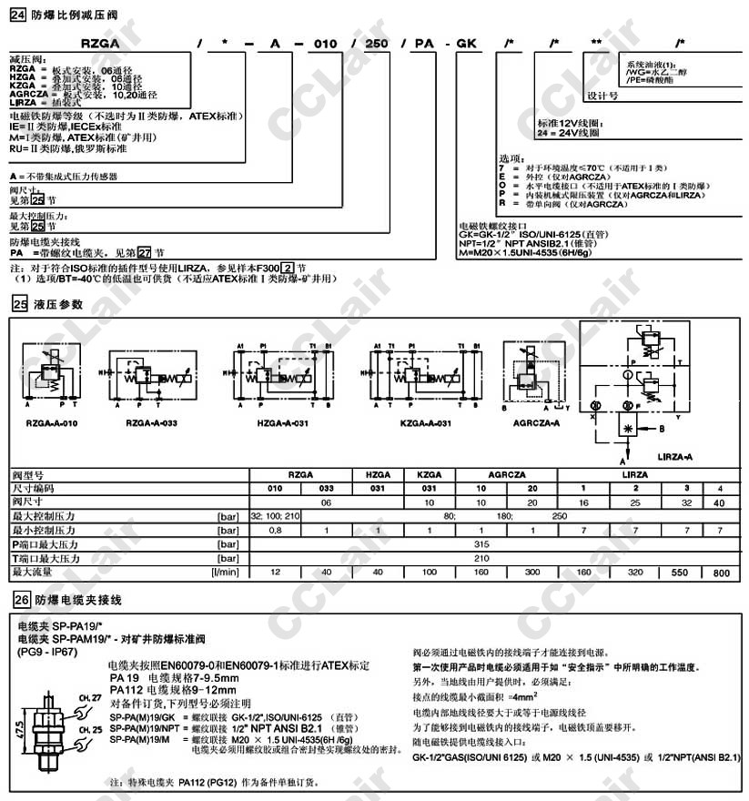 RZGA/IE-A-033,RZGA-A-033,RZGA/IE-A-033/250/PA-M/O/24,RZGA-A-033/250/PA-M/24,阿托斯ATOS隔爆比例減壓閥